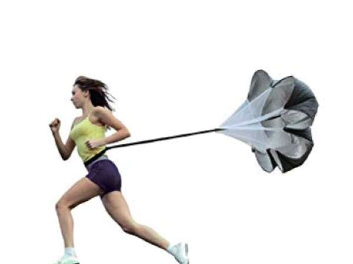 As the runner sprints, the parachute creates drag, which increases the intensity of the workout.
